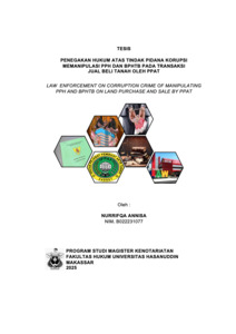 ANNISA, NURRIFQA (2025) PENEGAKAN HUKUM ATAS TINDAK PIDANA KORUPSI MEMANIPULASI PPH DAN BPHTB PADA TRANSAKSI JUAL BELI TANAH OLEH PPAT = LAW ENFORCEMENT ON CORRUPTION CRIME OF MANIPULATING PPH AND BPHTB ON LAND PURCHASE AND SALE BY PPAT. Thesis thesis, Universitas Hasanuddin.