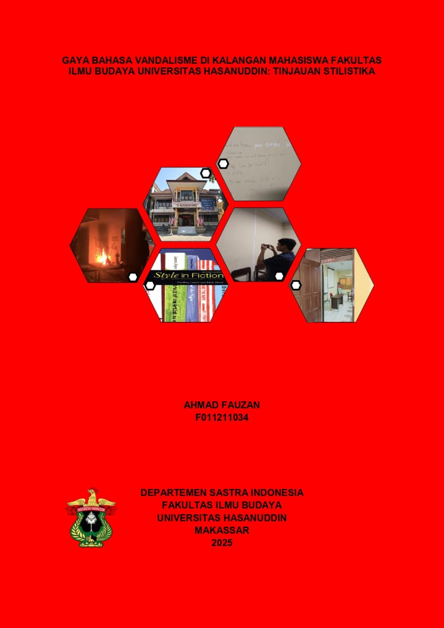 FAUZAN, AHMAD (2025) Gaya Bahasa Vandalisme di Kalangan Mahasiswa Fakultas Ilmu Budaya Universitas Hasanuddin: Tinjauan Stilistika = Vandalism Language Style Among Students of the Faculty of Cultural Sciences, Hasanuddin University: A Stylistic Review. Skripsi thesis, Universitas Hasanuddin.