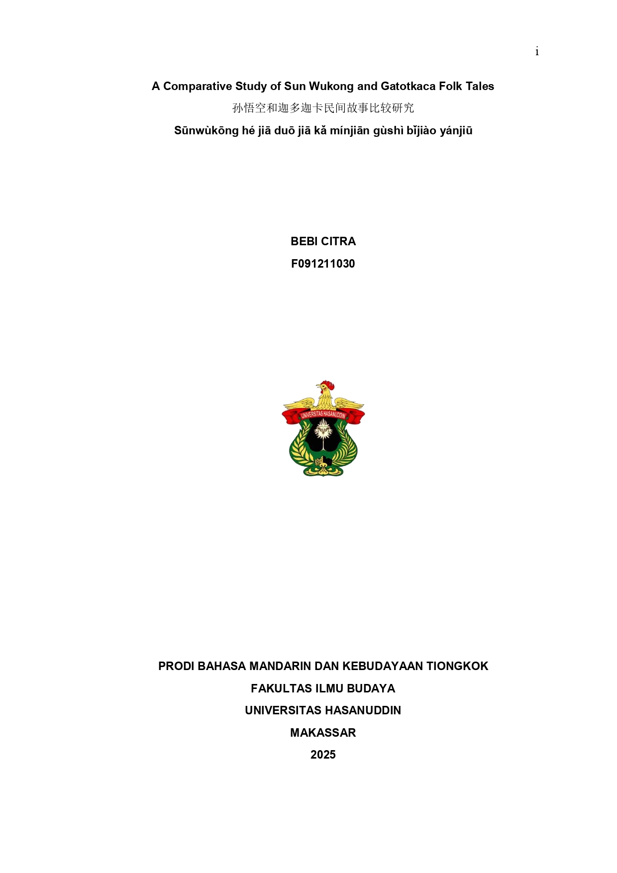CITRA, BEBI (2025) Studi Perbandingan Cerita Rakyat Sun Wukung dan Gatotkaca = A Comparative Study of Sun Wukong and Gatotkaca Folk Tales. Skripsi thesis, Universitas Hasanuddin.