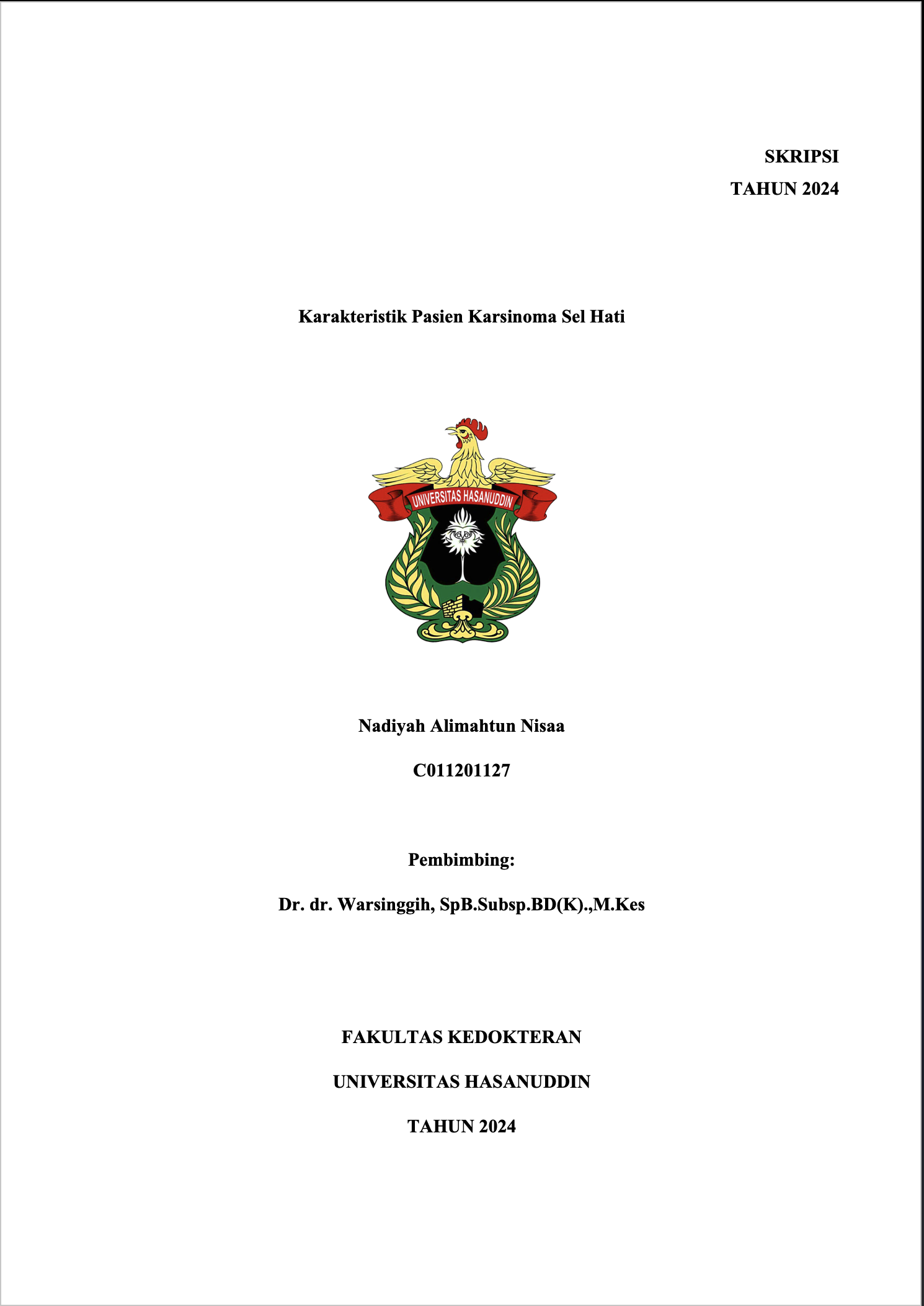NISAA, NADIYAH ALIMAHTUN (2024) Karakteristik Pasien Karsinoma Sel Hati = characteristics of hepatocellular carcinoma patients. Skripsi thesis, Universitas Hasanuddin.