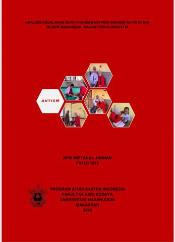 JANNAH, AFNI MIFTAHUL (2025) Analisis Kesalahan Bunyi Fonem Bagi Penyandang Autis di SLB Negeri Makassar: Kajian Psikolinguistik = An Analysis of Phoneme Sound Errors Among Individuals with Autism at SLB Negeri Makassar: A Psycholinguistic Study. Skripsi thesis, Universitas Hasanuddin.