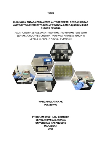 WARDATULLATIVA AK, WARDATULLATIVA AK (2025) HUBUNGAN ANTARA PARAMETER ANTROPOMETRI DENGAN KADAR MONOCYTES CHEMOATTRACTANT PROTEIN-1 (MCP-1) SERUM PADA SUBJEK DEWASA = RELATIONSHIP BETWEEN ANTHROPOMETRIC PARAMETERS WITH SERUM MONOCYTES CHEMOATTRACTANT PROTEIN-1 (MCP-1) LEVELS IN HEALTHY ADULT SUBJECTS. Thesis thesis, Universitas Hasanuddin.