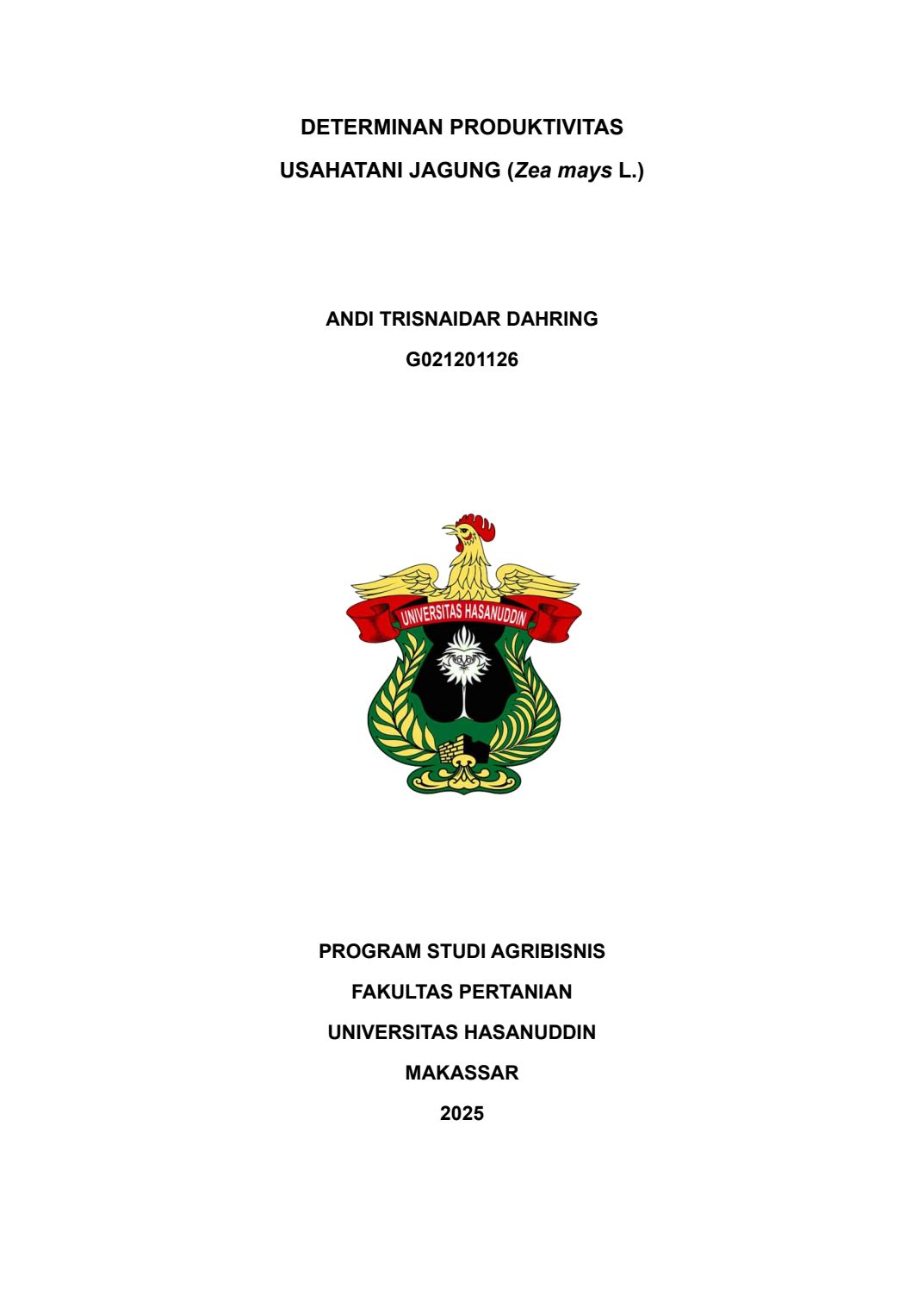 DAHRING, ANDI TRISNAIDAR (2025) Determinan Produktivitas Usahatani Jagung (Zea mays L.) = Factors Influencing Corn Farming Productivity. Skripsi thesis, UNIVERSITAS HASANUDDIN MAKASSAR.