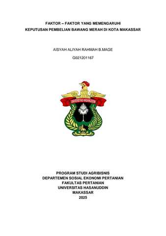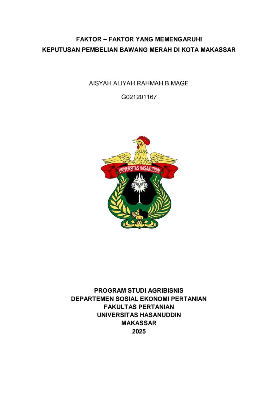 B.MAGE, AISYAH ALIYAH RAHMAH (2025) Faktor - Faktor yang Memengaruhi Keputusan Pembelian Bawang Merah di Kota Makassar = Factors Influencing the Purchase Decisions of Shallots in Makassar City. Skripsi thesis, UNIVERSITAS HASANUDDIN MAKASSAR.