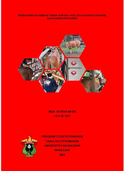 NASIR, MUH. SATRYA (2025) Perbandingan Dimensi Tubuh Sapi Bali Polled di Kabupaten Bone dan Kabupaten Barru = Comparison of Body Dimensions of Polled Bali Cattle in Bone Regency and Barru Regency. Skripsi thesis, Universitas Hasanuddin.