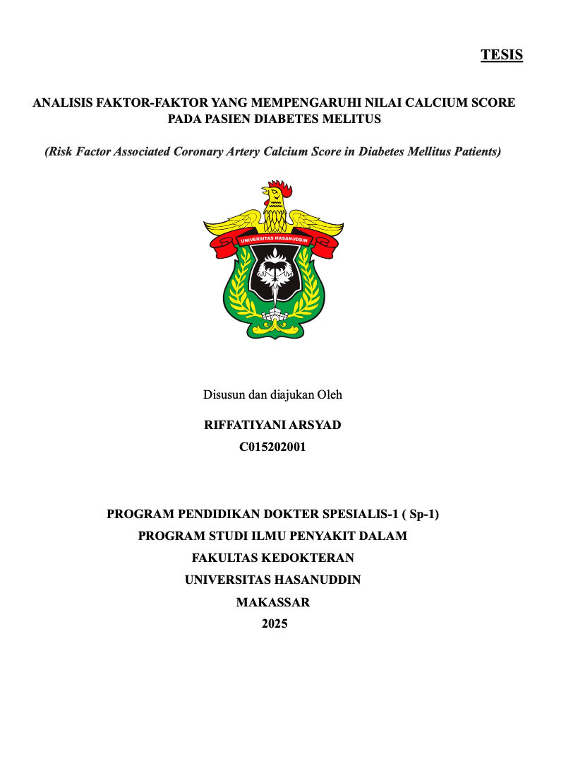ARSYAD, RIFFATIYANI (2025) Analisis Terhadap Faktor-Faktor yang Mempengaruhi Nilai Calcium Score pada Pasien Diabetes Melitus = Risk Factor Associated Coronary Artery Calcium Score in Diabetes Patients. Thesis thesis, Universitas Hasanuddin.
