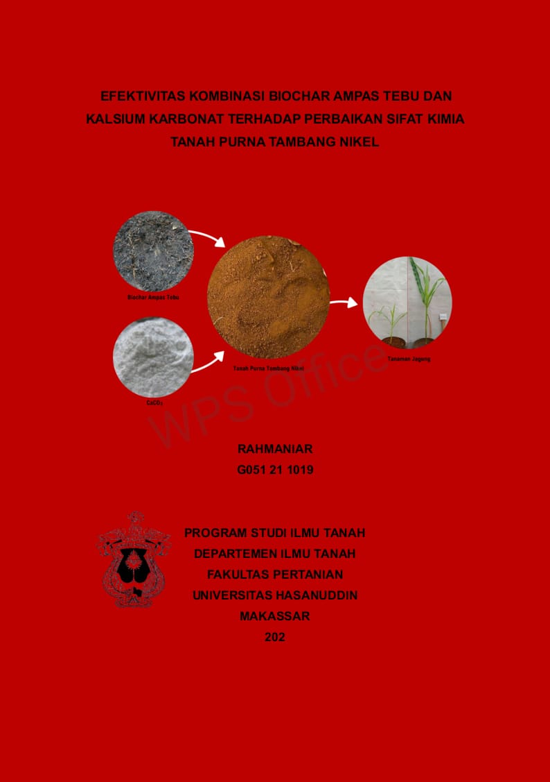 RAHMANIAR, RAHMANIAR (2025) Efektivitas Kombinasi Biochar Ampas Tebu dan Kalsium Karbonat terhadap Perbaikan Sifat Kimia Tanah Purna Tambang Nikel = Effectiveness of Bagasse Biochar Combination and Calcium Carbonate on Improving the Properties of Nickel Post-Mining Soil. Skripsi thesis, UNIVERSITAS HASANUDDIN MAKASSAR.