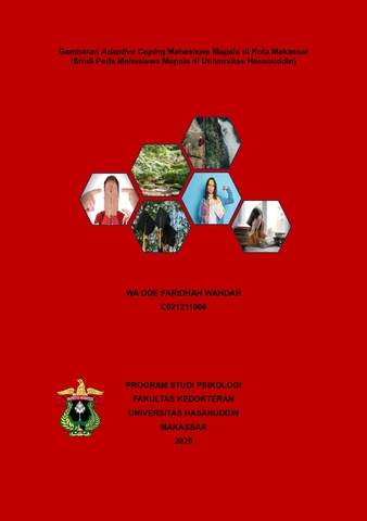 WAHDAH, WA ODE FARIDHAH (2025) Gambaran Adaptive Coping Mahasiswa Mapala di Kota Makassar (Studi Pada Mahasiswa Mapala di Universitas Hasanuddin) = Description of Adaptive Coping Among Mapala Student in Makassar (A Study on Mapala Student at Hasanuddin University). Skripsi thesis, Universitas Hasanuddin.