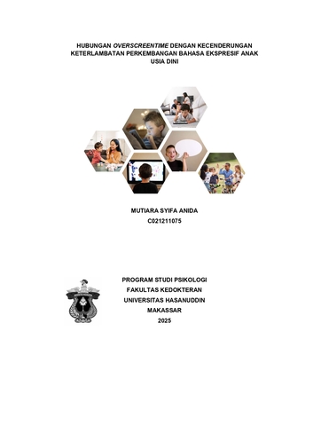 ANIDA, MUTIARA SYIFA (2025) Hubungan Overscreentime dengan Kecenderungan Keterlambatan Perkembangan Bahasa Ekspresif Anak Usia Dini = The Relationship of Overscreentime with the Tendency of Delayed Expressive Language Development in Early Childhood. Skripsi thesis, Universitas Hasanuddin.