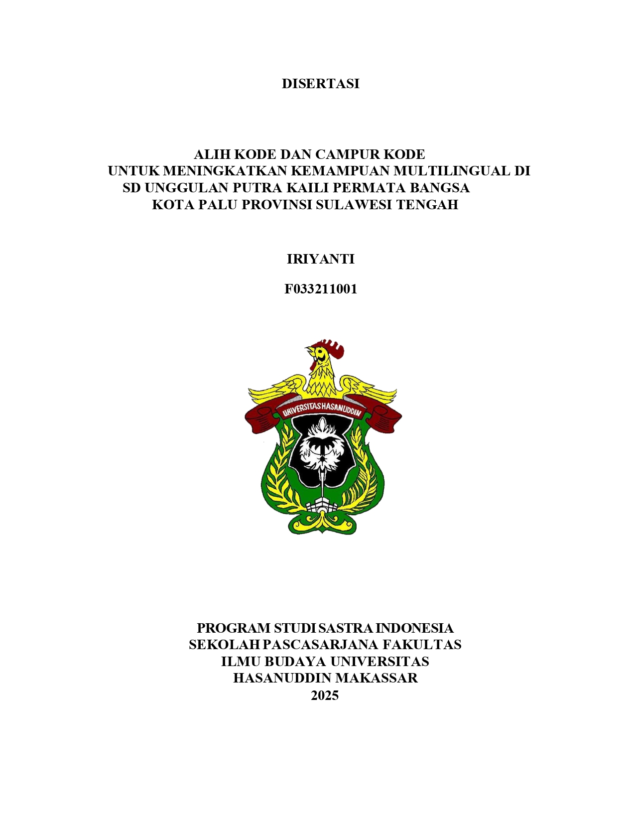 IRIYANTI, IRIYANTI (2025) ALIH KODE DAN CAMPUR KODE UNTUK MENINGKATKAN KEMAMPUAN MULTILINGUAL DI SD UNGGULAN PUTRA KAILI PERMATA BANGSA KOTA PALU PROVINSI SULAWESI TENGAH = ALIH KODE DAN CAMPUR KODE UNTUK MENINGKATKAN KEMAMPUAN MULTILINGUAL DI SD UNGGULAN PUTRA KAILI PERMATA BANGSA KOTA PALU PROVINSI SULAWESI TENGAH. Disertasi thesis, Universitas Hasanuddin.