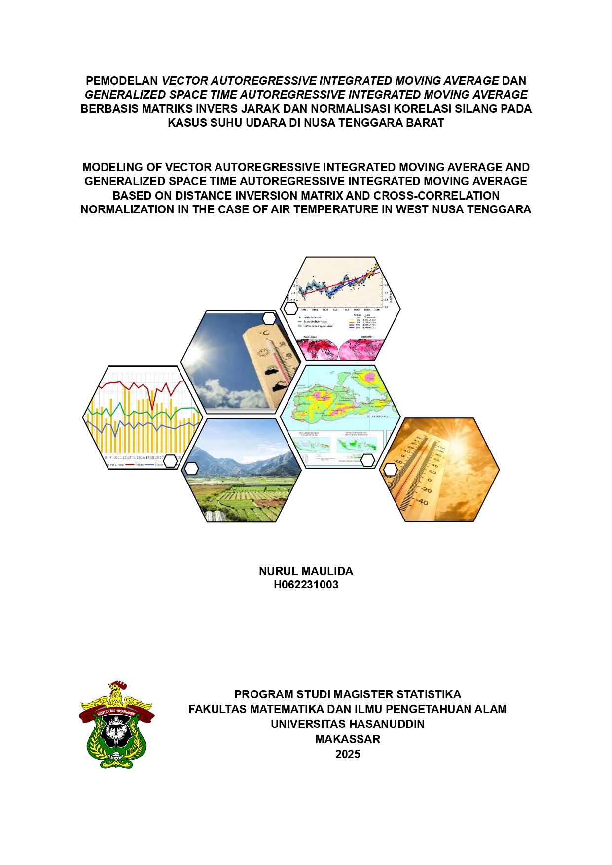 MAULIDA, NURUL (2025) Pemodelan Vector Autoregressive Integrated Moving Average dan Generalized Space Time Autoregressive Integrated Moving Average Berbasis Matriks Invers Jarak dan Normalisasi Korelasi Silang pada Kasus Suhu Udara di Nusa Tenggara Barat = Modeling of Vector Autoregressive Integrated Moving Average and Generalized Space Time Autoregressive Integrated Moving Average Based on Inverse Distance Matrix and Cross Correlation Normalization in the Case of Air Temperature in West Nusa Tenggara. Thesis thesis, Universitas Hasanuddin.