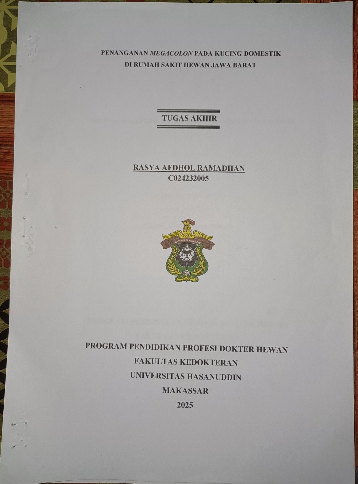 RAMADHAN, RASYA AFDHOL (2025) Penanganan Megacolon pada Kucing Domestik di Rumah Sakit Hewan Jawa Barat = Treatment of Megacolon in Domestic Cat at The West Java Hospital. Skripsi thesis, Universitas Hasanuddin.