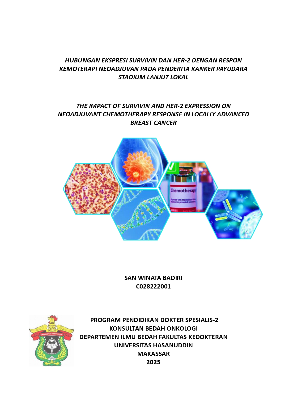 BADIRI, SAN WINATA (2025) HUBUNGAN EKSPRESI SURVIVIN DAN HER-2 DENGAN RESPON KEMOTERAPI NEOADJUVAN PADA PENDERITA KANKER PAYUDARA STADIUM LANJUT LOKAL = THE IMPACT OF SURVIVIN AND HER-2 EXPRESSION ON NEOADJUVANT CHEMOTHERAPY RESPONSE IN LOCALLY ADVANCED BREAST CANCER. Thesis thesis, Universitas Hasanuddin.