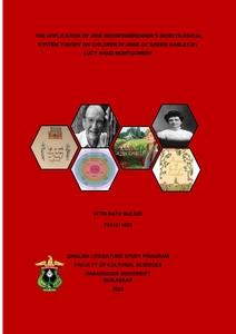 ABSTR ACT Fitri Ratu Bulqis. The Application of Urie Bronfenbrenner’s Bioecological System Theory on Children in Anne of Green Gables by Lucy Maud Montgomery (Supervised by Burhanuddin and Herawaty). The Bioecological Systems Theory by Urie Bronfenbrenner is a theory used to find out how the living environment can affect a person's growth and development so that this theory can be used to analyze the development of Anne Shirley's character in the novel Anne of Green Gables by Lucy Maud Montgomery before and after living in Avonlea. Therefore, this study aims to find out how the application of the Bioecological Systems theory by Urie Bronfenbrenner in the novel Anne of Green Gables and how the Bioecological System can affect Anne Shirley's character. The method used is a qualitative method using a literature study to apply the Bioecological Systems theory by Urie Bronfenbrenner, namely PPCT or Process–Person–Context–Time to Anne Shirley as the main character in Anne of Green Gables. Thus, this study shows that Anne's character changes are influenced by Process–Person–Context–Time or daily interactions, her personality, social environment, and life changes that occur over time as evidenced by Anne's character changes from being previously lacking in self-confidence, careless, and not knowing religion to finally being able to grow into a good child and an exemplary and high-achieving student due to her supportive living environment, so it can be concluded that over time, the living environment and the people around her can influence the formation of a person's character.
