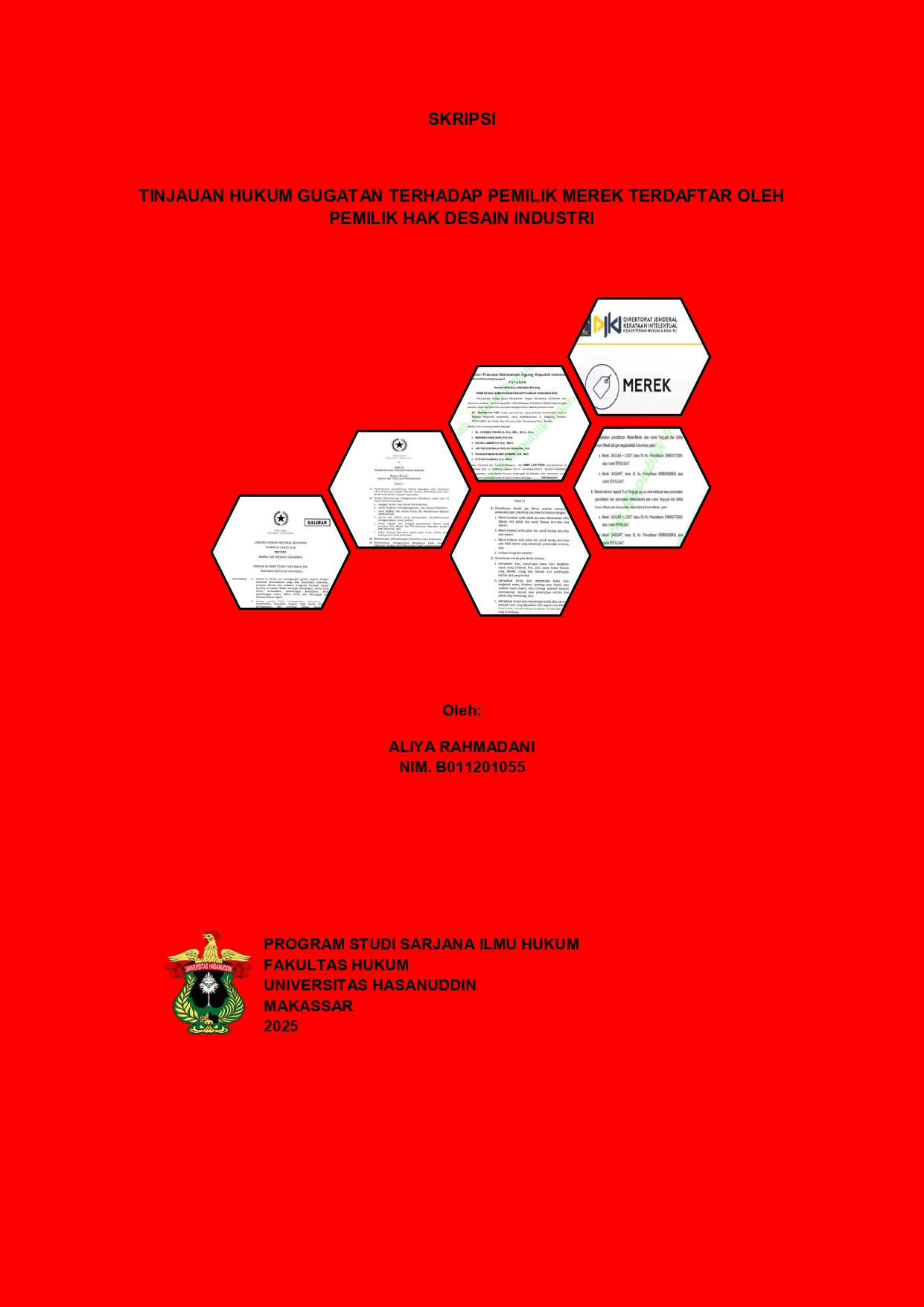 ALIYA RAHMADANI (NIM. B011201055). “Tinjauan Hukum Gugatan Terhadap Pemilik Merek Terdaftar Oleh Pemilik Hak Desain Industri”. Dibimbing oleh Hasbir Paserangi sebagai pembimbing Utama. Latar Belakang: Pada Putusan Nomor:7/Pdt.Sus.HAKI.2021/PN.SMG menimbulkan permasalahan hukum karena merek PT. Surabaya Top ditolak dan hanya memperoleh perlindungan melalui desain industri kemasan, sementara merek Hence Teh telah terdaftar. Permasalah yang muncul apakah PT. Surabaya Top dapat menggugat pemilik merek terdaftar karena adanya kemiripan desain Industri dengan merek Hence Teh. Tujuan: Penelitian ini bertujuan untuk menganalisis dan menjelaskan kewenangan pemilik desain industri dalam mengajukan gugatan terhadap pemilik merek terdaftar dan perlindungan hukum pemilik merek terdaftar yang digugat oleh pemilik desain industri. Metode: Penelitian ini menggunakan metode penelitian normatif dengan pendekatan perundang-undangan, studi kasus, dan pendekatan konseptual. Adapun sumber bahan hukum yakni bahan hukum primer, bahan hukum sekunder dan bahan hukum tersier dengan menggunakan teknik pengumpulan bahan hukum menggunakan tinjauan pustaka yang kemudian dianalisis secara kualitatif lalu diuraikan secara deskriptif. Hasil: (1) Pemilik Desain Industri dapat mengajukan gugatan terhadap merek terdaftar berdasarkan Undang-Undang Nomor 31 Tahun 2000 Tentang Desain industri pada Pasal 46 dan Pasal 9; (2) Bentuk perlindungan hukum yang dapat dilakukan oleh pemilik merek terdaftar yakni perlindungan hukum preventif dan perlindungan hukum represif. Kesimpulan: Pemilik desain indistri memiliki kewenangan mengajukan gugatan terhadap pemilik merek terdaftar karena terdapat iktikad tidak baik oleh tergugat. Sedangkan pemilik merek terdaftar dapat melakukan perlindungan hukum preventif dan perlindungan hukum represif.