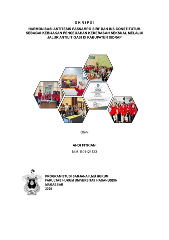 FITRIANI, ANDI (2025) Harmonisasi Antitesis Passampo Siri’ Dan Ius Constitutum Sebagai Kebijakan Pencegahan Kekerasan Seksual Melalui Jalur Antilitigasi Di Kabupaten Sidrap = Harmonization of the Antithesis Passampo Siri' and Ius Constitutum as a Policy for Preventing Sexual Violence Through Anti-Litigation in Sidrap Regency. Skripsi thesis, UNIVERSITAS HASANUDDIN MAKASSAR.