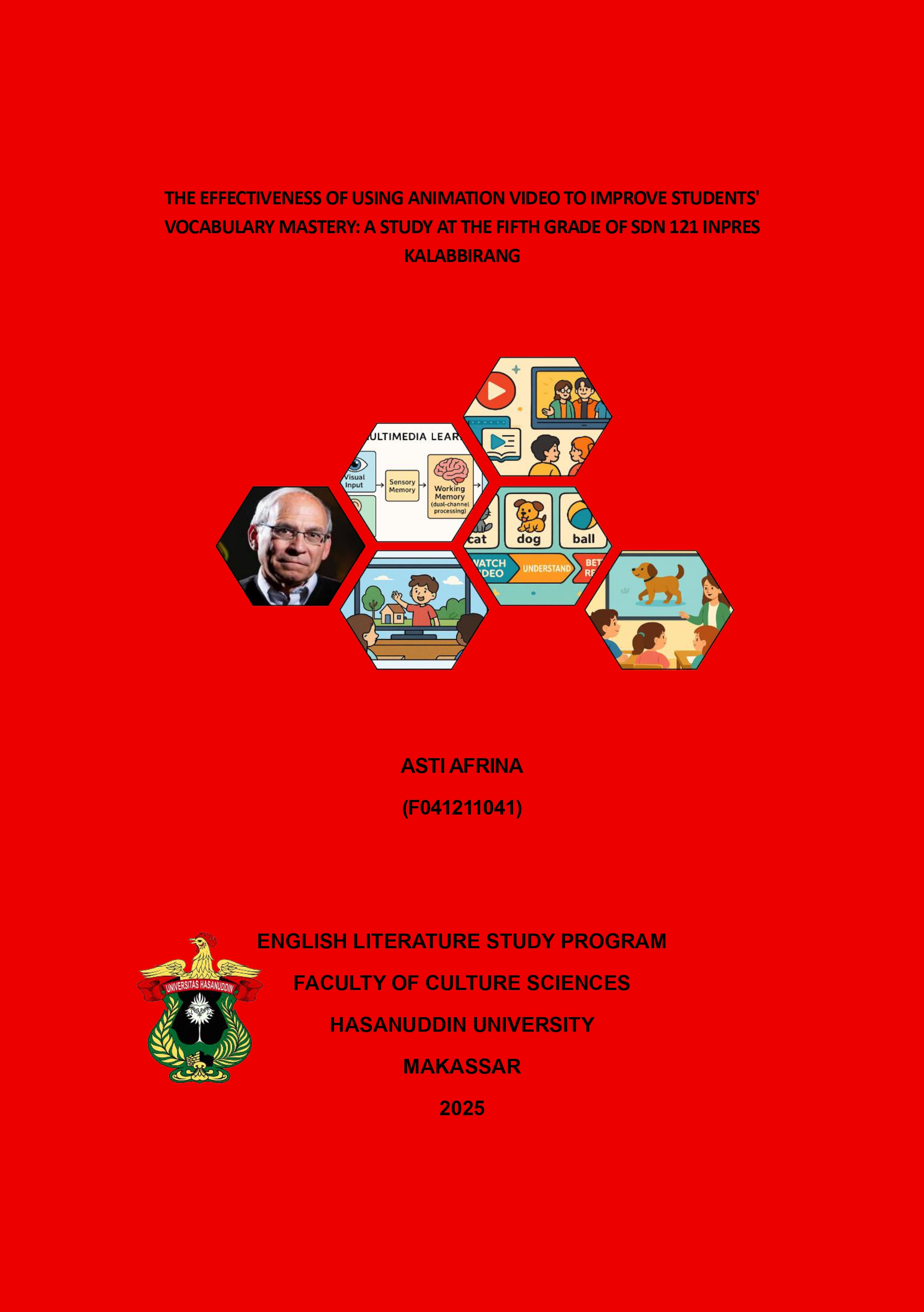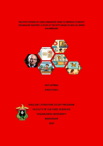 AFRINA, ASTI (2025) EFEKTIVITAS PENGGUNAAN VIDEO ANIMASI UNTUK MENINGKATKAN PENGUASAAN KOSAKATA SISWA: PENELITIAN PADA SISWA KELAS LIMA SDN 121 INPRES KALABBIRANG = THE EFFECTIVENESS OF USING ANIMATION VIDEO TO IMPROVE STUDENTS' VOCABULARY MASTERY: A STUDY AT THE FIFTH GRADE OF SDN 121 INPRES KALABBIRANG. Skripsi thesis, Universitas Hasanuddin.