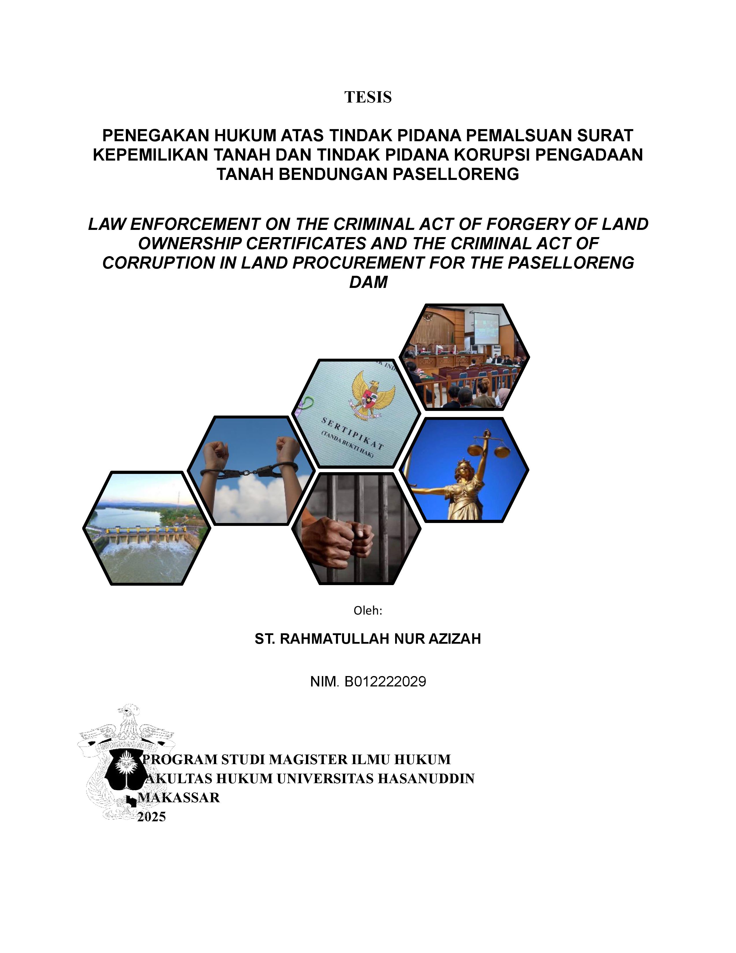 AZIZAH, ST. RAHMATULLAH NUR (2025) Penegakan Hukum Atas Tindak Pidana Pemalsuan Surat Kepemilikan Tanah Dan Tindak Pidana Korupsi Pengadaan Tanah Bendungan Paselloreng = Law Enforcement On The Criminal Act Of Forgery Of Land Ownership Cerfiticates And The Criminal Act Of Corruption In Land Procurement For The Paselloreng Dam. Thesis thesis, UNIVERSITAS HASANUDDIN MAKASSAR.