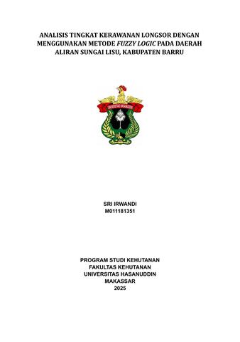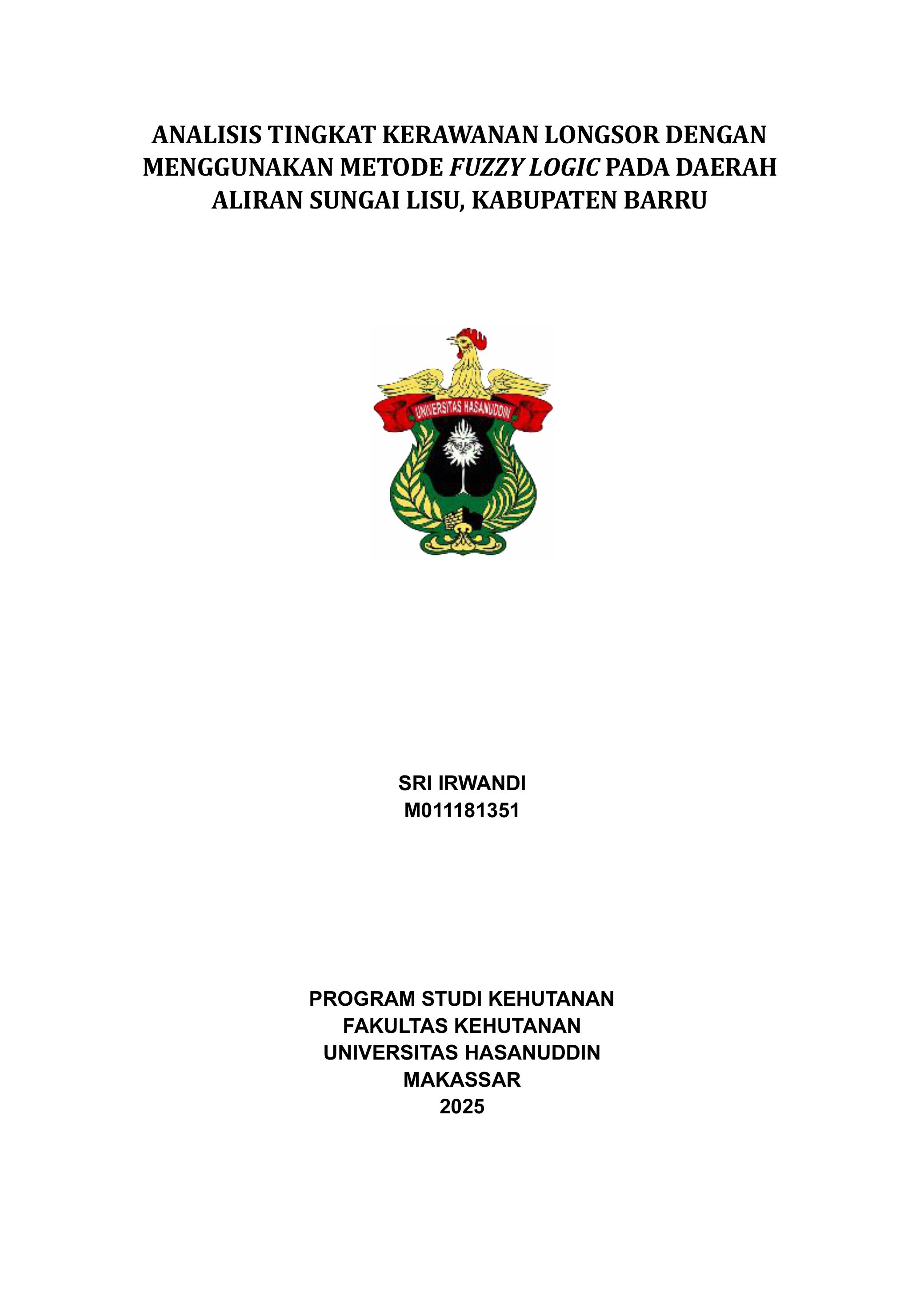IRWANDI, SRI (2025) ANALISIS TINGKAT KERAWANAN LONGSOR DENGAN MENGGUNAKAN METODE FUZZY LOGIC PADA DAERAH ALIRAN SUNGAI LISU, KABUPATEN BARRU = ANALYSIS OF LANDSLIDE VULNERABILITY LEVEL USING FUZZY LOGIC METHOD IN LISU RIVER WATERSHED, BARRU REGENCY. Skripsi thesis, UNIVERSITAS HASANUDDIN MAKASSAR.
