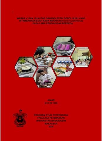 AIMAR, AIMAR (2025) Warna a* dan Kualitas Organoleptik Dodol Susu yang Ditambahkan Buah Naga Merah (Hylocereus Polyrhizus) pada Lama Pengukusan Berbeda = a* Color and Organoleptic Quality of Milk Dodol with the Addition of Red Dragon Fruit (Hylocereus polyrhizus) at Different Steaming Durations. Skripsi thesis, Universitas Hasanuddin.