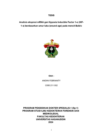 FEBRIANTY, ANDINI (2024) Analisis ekspresi mRNA gen Hypoxia Inducible Factor 1-α (HIF- 1 α) berdasarkan umur luka (wound age) pada mencit Balb/c = Analisis ekspresi mRNA gen Hypoxia Inducible Factor 1-α (HIF- 1 α) berdasarkan umur luka (wound age) pada mencit Balb/c. Thesis thesis, Universitas Hasanuddin.