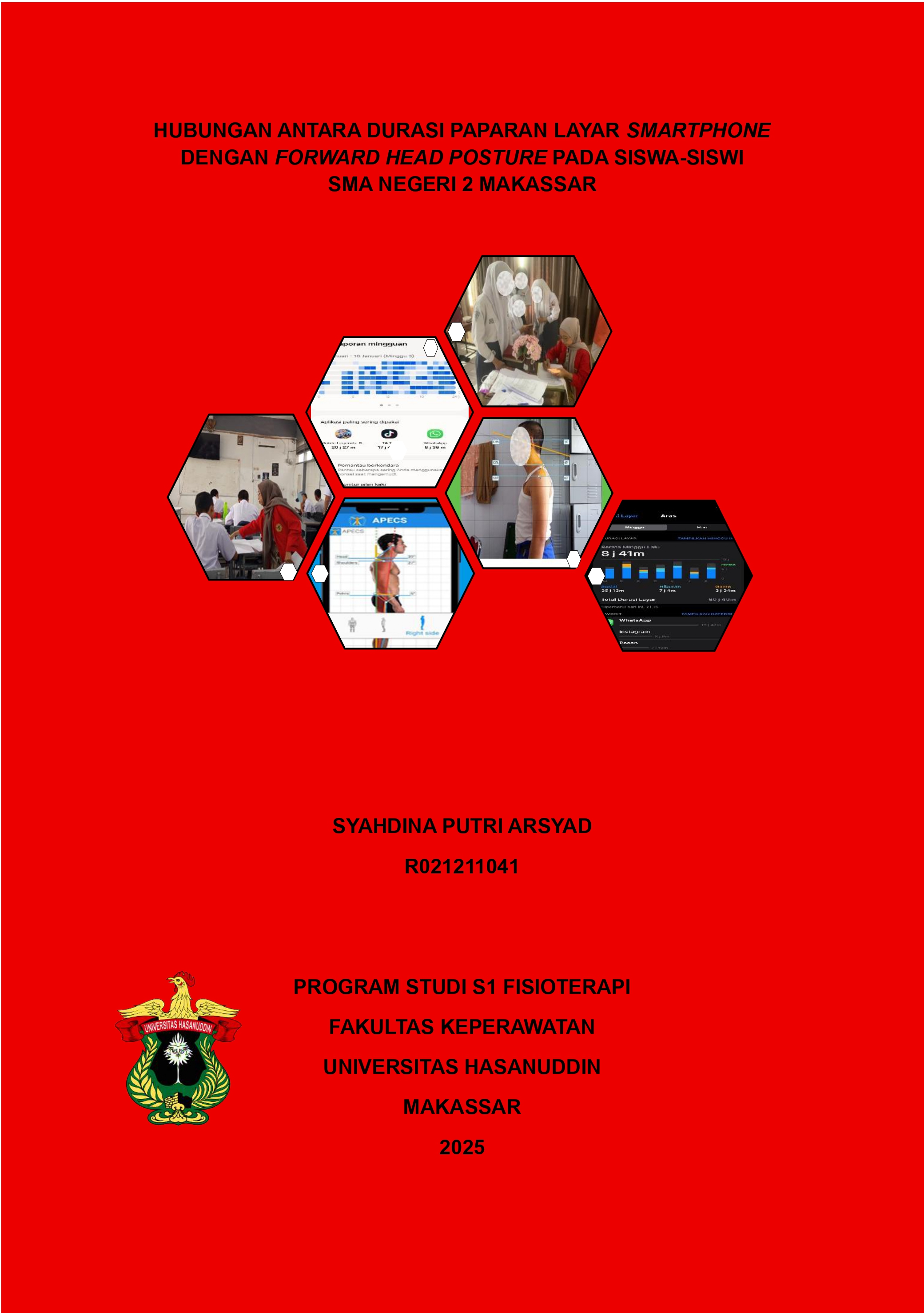PUTRI ARSYAD, SYAHDINA (2025) Hubungan Antara Durasi Paparan Layar Smartphone Dengan Forward Head Posture pada Siswa-Siswi SMA Negeri 2 Makassar = The Relationship Between Smartphone Screen Time Duration and Forward Head Posture Among Students of SMA Negeri 2 Makassar. Skripsi thesis, UNIVERSITAS HASANUDDIN MAKASSAR.