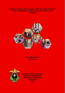 ABSTRAK NUR ZAHRA HAFIFAH. Hubungan Antara Indeks Massa Tubuh (IMT) Dengan Tingkat Nyeri Dysmenorrhea Primer Pada Santri SMPIT Darul Istiqamah (dibimbing oleh Prof.Dr.Djohan Aras,S.Ft.,Physio,M.Pd.,M.Kes.) Latar Belakang: Dysmenorrhea primer merupakan salah satu gangguan menstruasi yang umum dialami remaja putri, ditandai dengan nyeri saat haid tanpa adanya kelainan patologis. Salah satu faktor yang diduga berpengaruh terhadap tingkat nyeri dysmenorrhea adalah Indeks Massa Tubuh (IMT). Baik IMT yang terlalu rendah (underweight) maupun terlalu tinggi (overweight/obesitas) dapat memengaruhi keseimbangan hormon dalam tubuh dan meningkatkan produksi prostaglandin, yang menjadi pemicu nyeri haid. Tujuan: Penelitian ini bertujuan untuk mengetahui hubungan antara Indeks Massa Tubuh (IMT) dengan tingkat dysmenorrhea primer pada santri SMPIT Darul Istiqamah. Metode: Penelitian ini menggunakan pendekatan kuantitatif dengan desain cross-sectional. Sampel berjumlah 82 santri dengan IMT kategori underweight dan normal yang telah mengalami menstruasi, diambil menggunakan teknik total sampling. Data dikumpulkan melalui pengukuran tinggi dan berat badan serta kuesioner WaLIDD Score untuk menilai tingkat dysmenorrhea. Analisis data dilakukan menggunakan uji Spearman. Hasil: Hasil penelitian menunjukkan bahwa mayoritas responden berada pada kategori IMT underweight (51,2%) dan mengalami tingkat dysmenorrhea sedang (30,5%) maupun tidak mengalami dysmenorrhea (30,5%). Hasil analisis statistik menunjukkan adanya hubungan yang signifikan antara IMT dengan tingkat nyeri dysmenorrhea primer (p < 0,05). Kesimpulan: Terdapat hubungan yang signifikan antara Indeks Massa Tubuh dengan tingkat nyeri dysmenorrhea primer pada santri SMPIT Darul Istiqamah. Semakin rendah IMT, maka tingkat keparahan dysmenorrhea cenderung meningkat.
