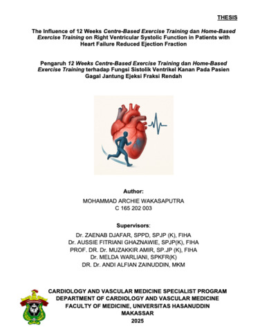 WAKASAPUTRA, MOH. ARCHIE (2025) Pengaruh 12 Weeks Centre-Based Exercise Training dan Home-Based Exercise Training terhadap Fungsi Sistolik Ventrikel Kanan Pada Pasien Gagal Jantung Ejeksi Fraksi Rendah = The Influence of 12 Weeks Centre-Based Exercise Training dan Home-Based Exercise Training on Right Ventricular Systolic Function in Patients with Heart Failure Reduced Ejection Fraction. Thesis thesis, Universitas Hasanuddin.