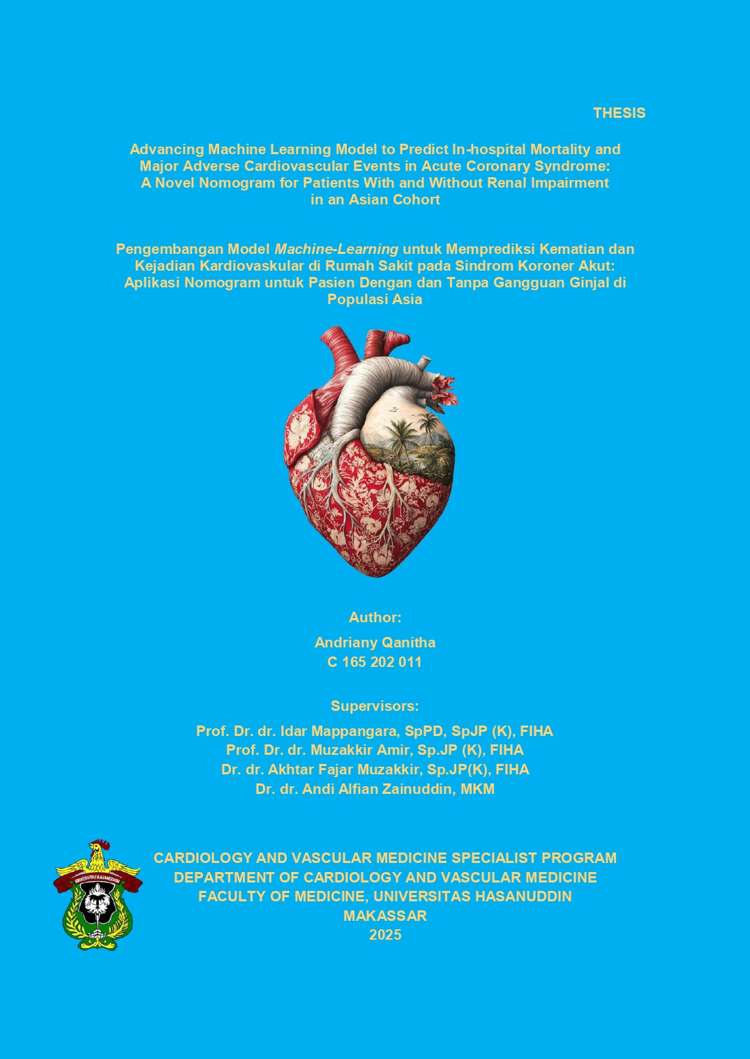 QANITHA, ANDRIANY (2025) Pengembangan Model Machine-Learning untuk Memprediksi Kematian dan Kejadian Kardiovaskular di Rumah Sakit pada Sindrom Koroner Akut: Aplikasi Nomogram untuk Pasien Dengan dan Tanpa Gangguan Ginjal di Populasi Asia = Advancing Machine Learning Model to Predict In-Hospital Mortality and Major Adverse Cardiovascular Events. Thesis thesis, Universitas Hasanuddin.