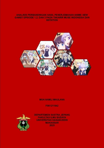 MAULANA, MUH. NAMLI (2025) ANALISIS PERBANDINGAN HASIL PENERJEMAHAN ANIME NEW GAME!! EPISODE 1, 2, DAN 3 PADA TAKARIR MUSE INDONESIA DAN BSTATION = COMPARATIVE ANALYSIS OF THE TRANSLATION RESULTS OF ANIME NEW GAME!! EPISODES 1, 2, AND 3 ON TAKARIR MUSE INDONESIA AND BSTATION. Skripsi thesis, Universitas Hasanuddin.