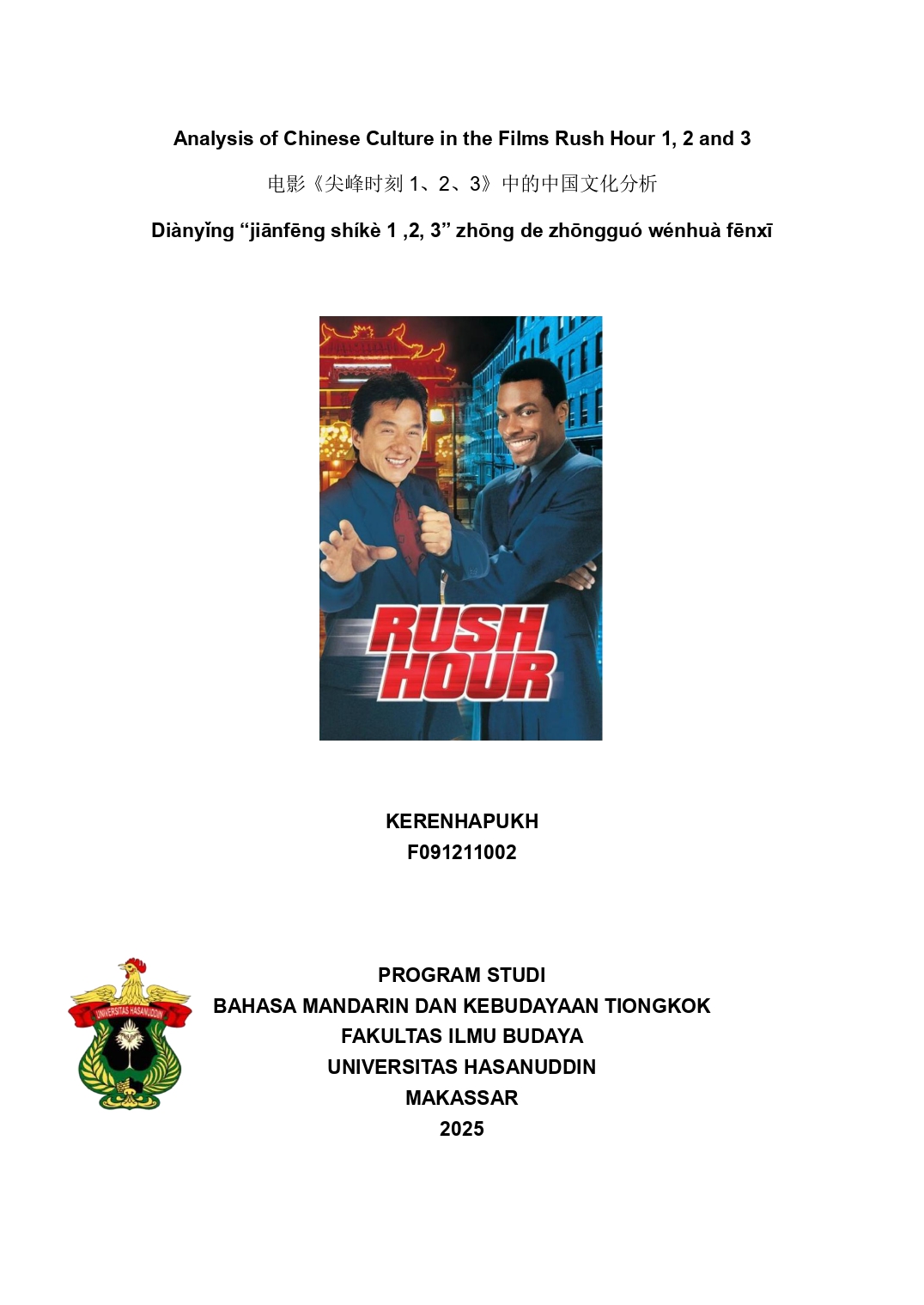 KERENHAPUKH, KERENHAPUKH (2025) Analisis Budaya Tiongkok dalam Film Rush Hour 1, 2 dan 3 = Analysis of Chinese Culture in the Films Rush Hour 1, 2 and 3. Skripsi thesis, Universitas Hasanuddin.