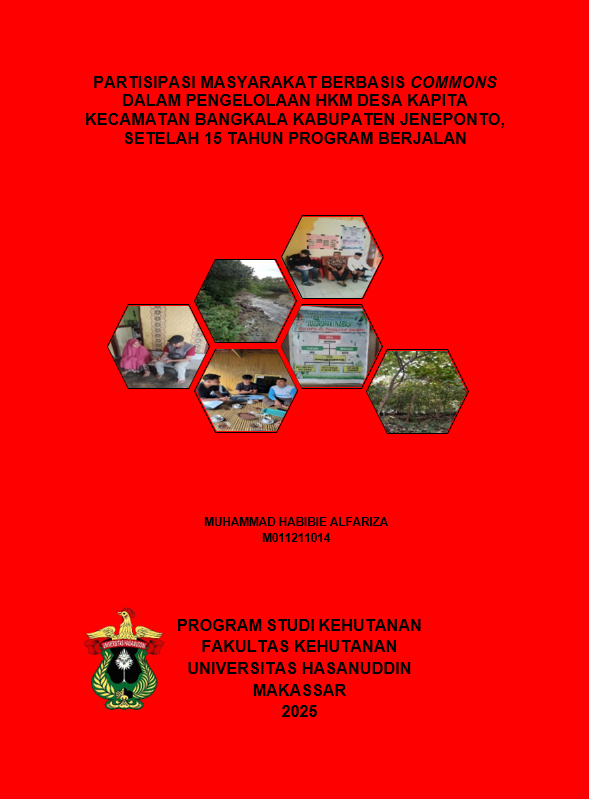 ALFARIZA, MUHAMMAD HABIBIE (2025) Partisipasi Masyarakat Berbasis Commons Dalam Pengelolaan Hkm Desa Kapita Kecamatan Bangkala Kabupaten Jeneponto, Setelah 15 Tahun Program Berjalan = Commons Based Community Participation in the Management of Community Forestry in Kapita Village, Bangkala Subdistrict, Jeneponto Regency, After 15 Years of Program Implementation. Skripsi thesis, UNIVERSITAS HASANUDDIN MAKASSAR.