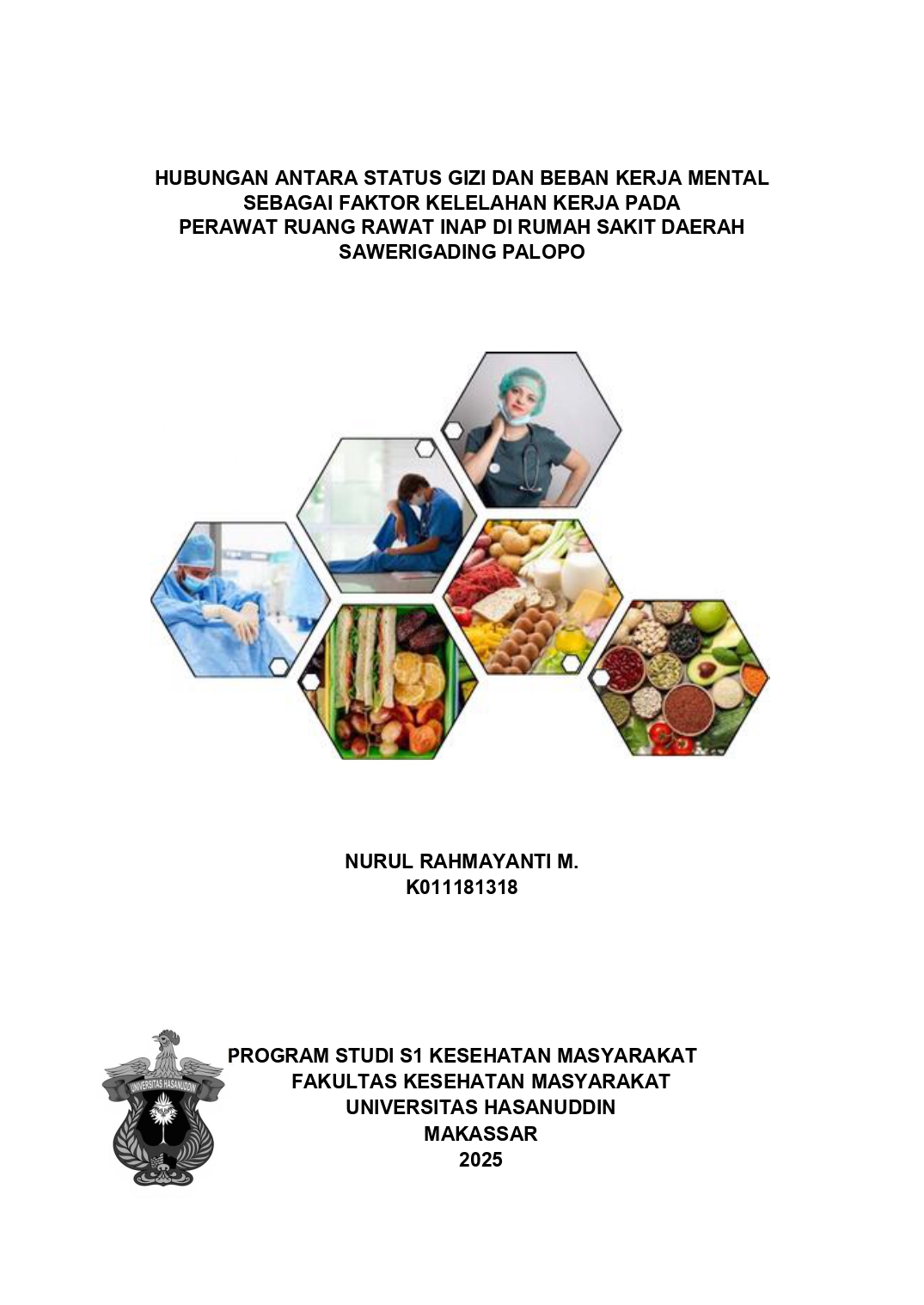 RAHMAYANTI M., NURUL (2025) HUBUNGAN ANTARA STATUS GIZI DAN BEBAN KERJA MENTAL SEBAGAI FAKTOR KELELAHAN KERJA PADA PERAWAT RUANG RAWAT INAP DI RUMAH SAKIT DAERAH SAWERIGADING PALOPO = Relationship Between Nutritional Status and Mental Workload as Factors of Work Fatigue Among Nurses in the Inpatient Room at Sawerigading Palopo Regional Hospital. Skripsi thesis, Universitas Hasanuddin.