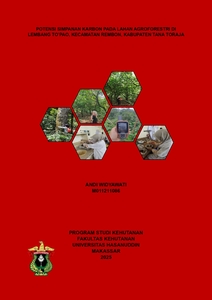Andi Widyawati. Potensi Simpanan Karbon pada Lahan Agroforestri di Lembang To’pao, Kecamatan Rembon, Kabupaten Tana Toraja (dibimbing oleh Ahmad Rifqi Makkasau). Agroforestri sebagai sistem penggunaan lahan yang menggabungkan pohon dan tanaman pertanian telah terbukti mampu meningkatkan cadangan karbon dan memberikan manfaat ekologis yang signifikan. Penelitian ini bertujuan untuk mengetahui potensi simpanan karbon pada lahan agroforestri di Lembang To’pao, Kecamatan Rembon, Kabupaten Tana Toraja. Penelitian dilaksanakan pada bulan Februari hingga Mei 2025 menggunakan metode purposive sampling pada 36 plot pengamatan. Data yang dikumpulkan meliputi pengukuran diameter pohon, tinggi pohon, jenis vegetasi, serta pengambilan sampel tumbuhan bawah, serasah, dan tanah. Hasil penelitian menunjukkan bahwa total simpanan karbon pada lahan agroforestri mencapai 32,87 ton/ha, dengan kontribusi terbesar berasal dari komponen pohon, diikuti oleh tanah, serasah, dan tumbuhan bawah.
