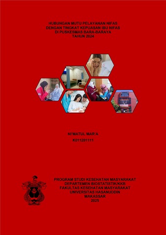 MAR'A, NI'MATUL (2025) Hubungan Mutu Pelayanan Nifas dengan Tingkat Kepuasan Ibu Nifas di Puskesmas Bara-Baraya Tahun 2024 = The Relationship between Postpartum Service Quality and Postpartum Mother Satisfaction Level at Bara-Baraya Health Center in 2024. Skripsi thesis, Universitas Hasanuddin.