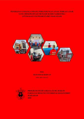 Muhammad Ridwan (B011181412). Penerapan Undang-Undang Perlindungan Anak Terkait Anak Yang Dieksploitasi Menjadi Kurir Narkotika. Dibimbing oleh Aswanto sebagai Pembimbing utama dan Audyna Mayasari Muin sebagai Pembimbing pendamping . Latar Belakang: Eksploitasi anak sebagai kurir narkotika merupakan bentuk kejahatan yang tidak hanya melanggar hukum, tetapi juga mencederai hak-hak anak sebagaimana diatur dalam Undang-Undang Nomor 35 Tahun 2014 tentang Perlindungan Anak dan Undang-Undang Nomor 11 Tahun 2012 tentang Sistem Peradilan Pidana Anak. Tujuan: untuk mengetahui dan menganalisis penerapan Undang-Undang Perlindungan Anak dalam kasus anak yang dieksploitasi sebagai kurir narkotika, serta untuk mengidentifikasi faktor-faktor yang menjadi penghambat dalam implementasi perlindungan terhadap anak yang dieksploitasi menjadi kurir narkotika. Metode: Tipe penelitian adalah penelitian hukum empiris dengan teknik studi lapangan (Field Research), yaitu penelitian yang dilakukan untuk memperoleh data primer dan data sekunder. Lokasi penelitian berada di Satuan Narkoba Kepolisian Resor Kota Makassar. Hasil: Penelitian ini menunjukkan bahwa 1) Penerapan Undang-Undang Perlindungan Anak terhadap anak yang dieksploitasi menjadi kurir narkotika belum berjalan secara optimal. Sebagian besar kasus langsung dilimpahkan ke tahap penuntutan tanpa upaya penyelesaian melalui mekanisme diversi. 2) faktor penghambat dalam penerapan Undang-Undang terhadap anak yang dieksploitasi menjadi kurir narkotika antara lain: (a). Faktor Masyarakat, b) Faktor sarana dan prasarana, (c) faktor penegak hukum. Kesimpulan: Penerapan Undang-Undang Perlindungan Anak terhadap anak yang dieksploitasi menjadi kurir narkotika di Polrestabes Makassar belum berjalan secara optimal, baik dari segi pendekatan hukum yang dominan bersifat formal, dan keterbatasan fasilitas pendukung.