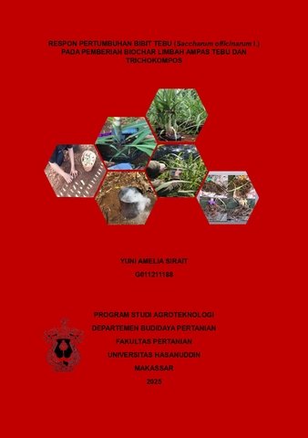 SIRAIT, YUNI AMELIA (2025) RESPON PERTUMBUHAN BIBIT TEBU (Saccharum officinarum L.) PADA PEMBERIAN BIOCHAR LIMBAH AMPAS TEBU DAN TRICHOKOMPOS = Response of Sugarcane Seedling Growth (Saccharum officinarum L.) on the Provision of Sugarcane Bagasse Waste Biochar and Trichocompost. Skripsi thesis, Universitas Hasanuddin.