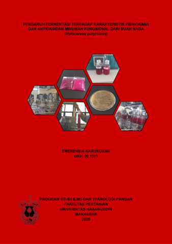 KARURUKAN, EMERENSIA (2025) Pengaruh Fermentasi terhadap Karakteristik Fisikokimia dan Antioksidan Minuman Fungsional dari Buah Naga (Hylocereus polyrhizus) = The Effect of Fermentation on the Physicochemical Characteristics and Antioxidants of Functional Drink from Dragon Fruit (Hylocereus polyrhizus). Skripsi thesis, Universitas Hasanuddin.