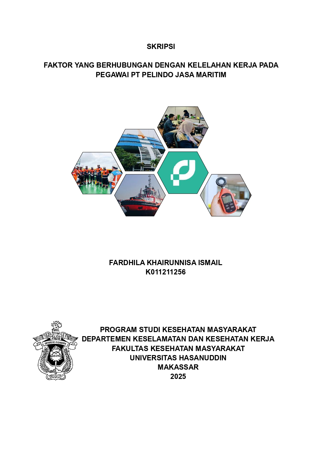 ISMAIL, FARDHILA KHAIRUNNISA (2025) Faktor yang Berhubungan dengan Kelelahan Kerja pada Pegawai PT Pelindo Jasa Maritim = Factors Related to Work Fatigue on Employees at PT Pelindo Jasa Maritim. Skripsi thesis, Universitas Hasanuddin.