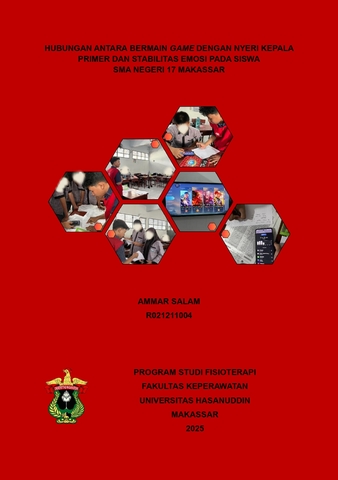 SALAM, AMMAR (2025) Hubungan Antara Durasi Bermain Game Dengan Nyeri Kepala Primer dan Stabilitas Emosi pada Siswa SMA Negeri 17 Makassar = The Relationship Between Gaming Duration and Primary Headache and Emotional Stability Among Students of SMA Negeri 17 Makassar. Skripsi thesis, Universitas Hasanuddin.