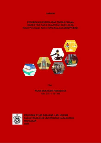 RAMADHAN, FAAIS MUFAASIR (2025) PENERAPAN DIVERSI ATAS TINDAK PIDANA NARKOTIKA YANG DILAKUKAN OLEH ANAK (Studi Penetapan Nomor 5/Pid.Sus.Anak/2022/PN.BAU) = "The Implementation of Diversion in Narcotics Crime Committed by Children (Case Study of Determination Number 5/Pid.Sus.Child/2022/PN.BAU)". Skripsi thesis, UNIVERSITAS HASANUDDIN.