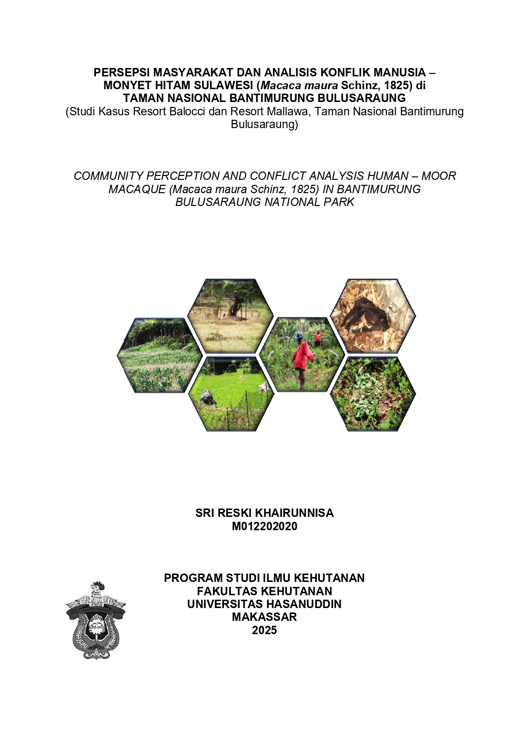 KHAIRUNNISA, SRI RESKI (2025) Persepsi Masyarakat dan Analisis Konflik Manusia – Monyet Hitam Sulawesi (Macaca maura Schinz, 1825) di Taman Nasional Bantimurung Bulusaraung = Community Perception and Conflict Analysis Human – Moor macaque (Macaca maura Schinz, 1825) in Bantimurung Bulusaraung National Park. Skripsi thesis, UNIVERSITAS HASANUDDIN MAKASSAR.