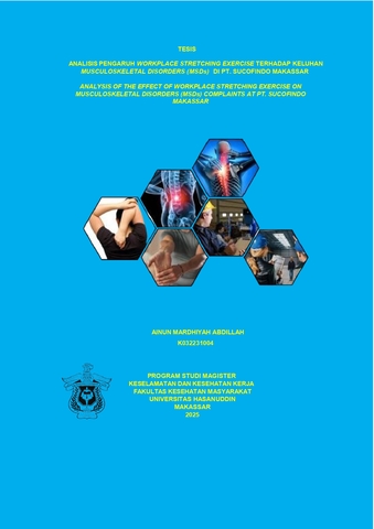 ABDILLAH, AINUN MARDHIYAH ` (2025) Analisis Pengaruh Workplace Stretching Exercises Terhadap Keluhan Musculoskeletal Disorders (MSDs) di PT Sucofindo Makassar = ANALYSIS OF THE EFFECT OF WORKPLACE STRETCHING EXERCISE ON MUSCULOSKELETAL DISORDERS (MSDs) AT PT SUCOFINDO MAKASSAR. Thesis thesis, Universitas Hasanuddin.