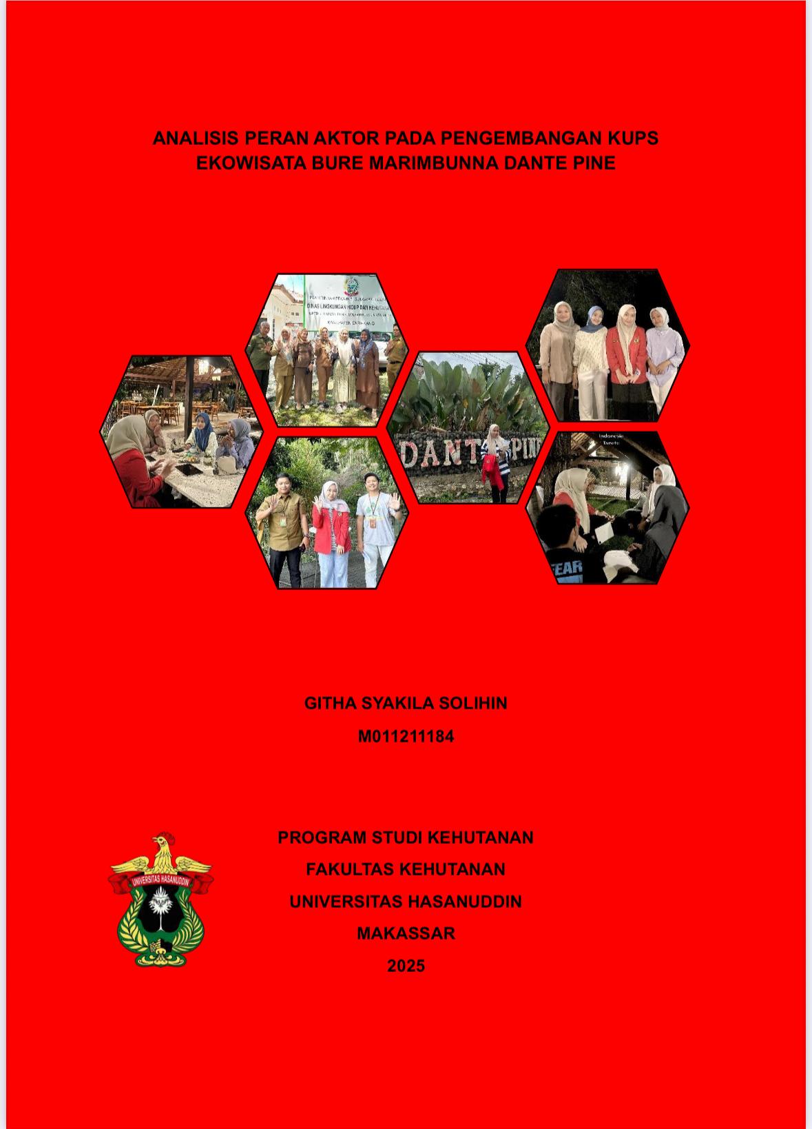 SOLIHIN, GITHA SYAKILA (2025) ANALISIS PERAN AKTOR PADA PENGEMBANGAN KUPS EKOWISATA BURE MARIMBUNNA DANTE PINE = ANALYSIS OF THE ROLE OF ACTORS IN THE DEVELOPMENT OF BURE MARIMBUNNA DANTE PINE ECOTOURISM KUPS. Skripsi thesis, Universitas Hasanuddin.