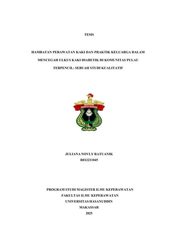 RATUANIK, JULIANA NOVLY (2025) Hambatan Perawatan Kaki dan Praktik Keluarga dalam Mencegah Ulkus Kaki Diabetik di Komunitas Pulau Terpencil: Sebuah Studi Kualitatif = Barriers to Foot Care and Family Practices in Preventing Diabetic Foot Ulcers in Remote Island Communities: A Qualitative Study. Skripsi thesis, Universitas Hasanuddin.