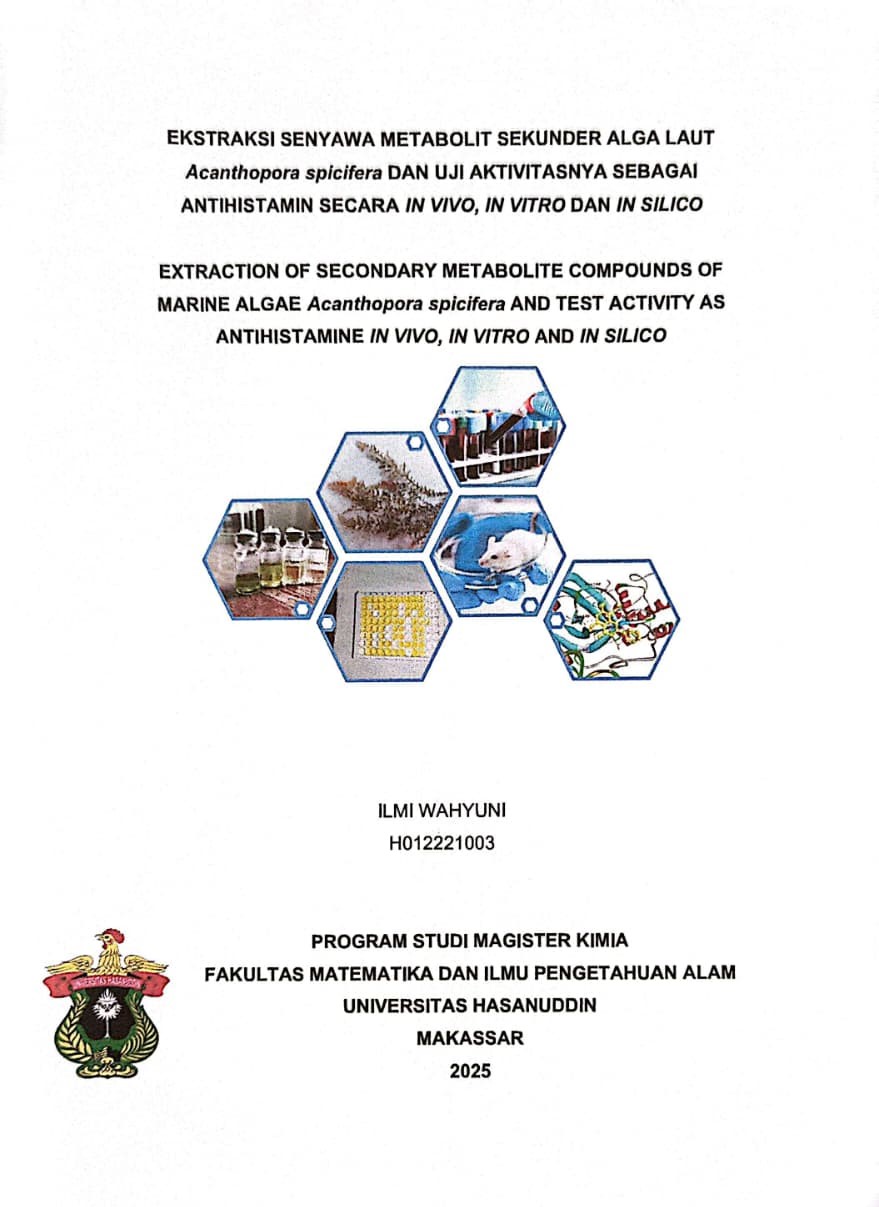 WAHYUNI, ILMI (2025) Ekstraksi Senyawa Metabolit Sekunder Alga Laut Acanthopora spicifera dan Uji Aktivitasnya Sebagai Antihistamin Secara In Vivo, In Vitro dan In Silico = Extraction of Secondary Metabolite Compounds of Marine Algae Acanthopora spicifera and Test Activity as Antihistamine In Vivo, In Vitro and In Silico. Thesis thesis, Universitas Hasanuddin.