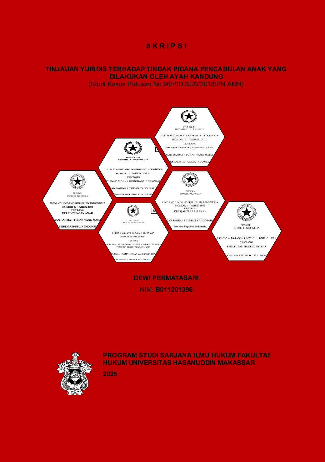 PERMATASARI, DEWI (2025) TINJAUAN YURIDIS TERHADAP TINDAK PIDANA PENCABULAN ANAK YANG DILAKUKAN OLEH AYAH KANDUNG (Studi Kasus Putusan No.96/PID.SUS/2018/PN AMR) = LEGAL REVIEW OF THE CRIMINAL ACT OF CHILD MOLESTERY COMMITTED BY THE BIOLOGICAL FATHER (Case Study of Decision No.96/PID.SUS/2018/PN AMR). Skripsi thesis, UNIVERSITAS HASANUDDIN.