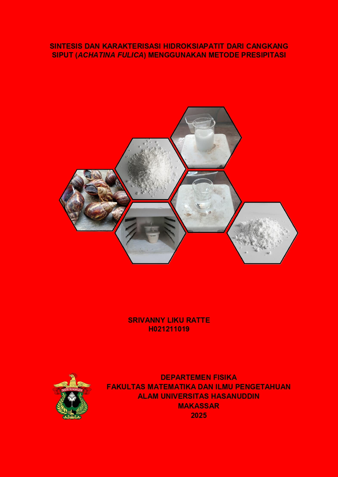 RATTE, SRIVANNY LIKU (2025) Sintesis dan Karakterisasi Hidroksiapatit dari Cangkang Siput (Achatina Fulica) Menggunakan Metode Presipitasi = SYNTHESIS AND CHARACTERIZATION OF HYDROXYAPATITE FROM SNAIL SHELL (ACHATINA FULICA) USING PRECIPITATION METHOD. Skripsi thesis, Universitas Hasanuddin.