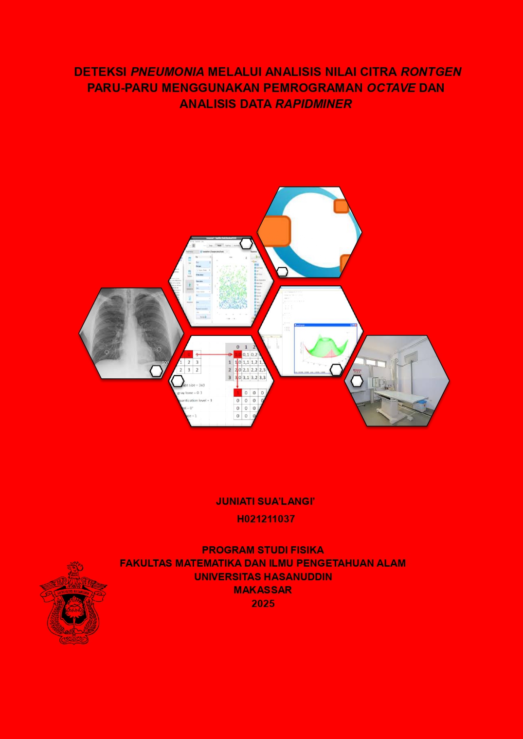 SUA'LANGI', JUNIATI (2025) Deteksi Pneumonia Melalui Analisis Nilai Citra Rontgen Paru-paru Menggunakan Pemrograman Octave Dan Analisis Data RapidMiner = Detection Of Pneumonia Through The Analysis Of Lung X-ray Image Value Using Octave Programming And RapidMiner Data Analysis. Skripsi thesis, Universitas Hasanuddin.