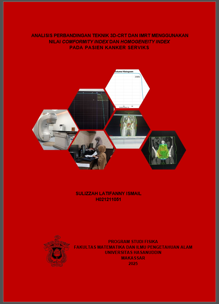 ISMAIL, SULIZZAH LATIFANNY (2025) ANALISIS PERBANDINGAN TEKNIK 3D-CRT DAN IMRT MENGGUNAKAN NILAI COMFORMITY INDEX DAN HOMOGENEITY INDEX PADA PASIEN KANKER SERVIKS = COMPARATIVE ANALYSIS OF 3D-CRT AND IMRT TECHNIQUES USING CONFORMITY INDEX AND HOMOGENEITY INDEX VALUES IN CERVICAL CANCER PATIENTS. Skripsi thesis, Universitas Hasanuddin.